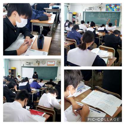 です。テスト前なので、各教科自習の時間が多いです。しっかり勉強して、テストでいい点をとれるようにがんばりましょう!提出物も忘れずに!