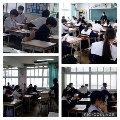 です。テストも多くの教科が返ってきていると思います。よい結果を残せた人はこのまま継続しましょう。思うような結果にならなかった人は日々の授業を大切に、期末テストにむけて準備をしていきましょう。