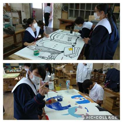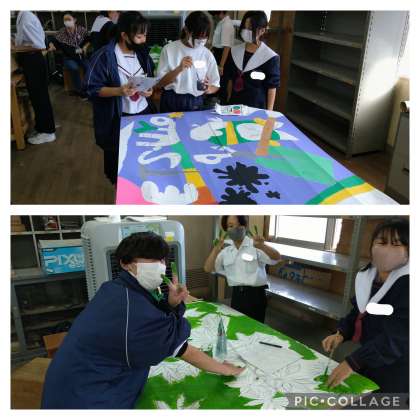 昨日に引き続き各クラスの有志の人たちにより、階段アートも着々と仕上がってきています♪