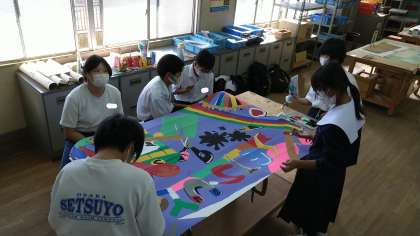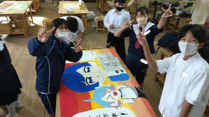 1年生・階段アート作成風景