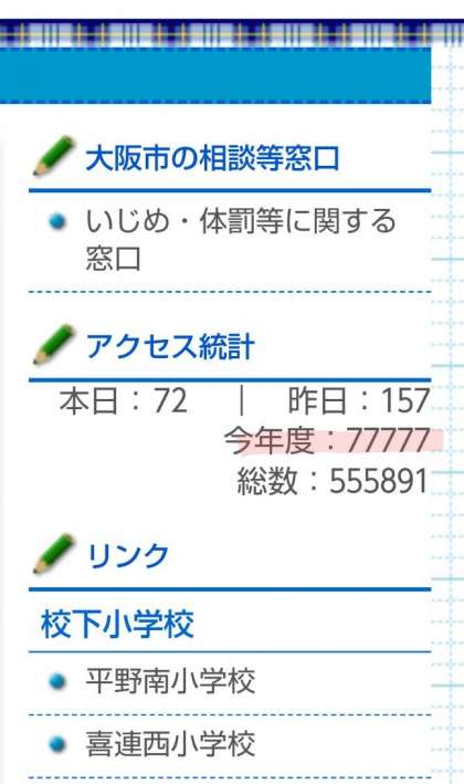 昨日、今年度の学校ホームページ総アクセス数が「77777」件を達成しました!!