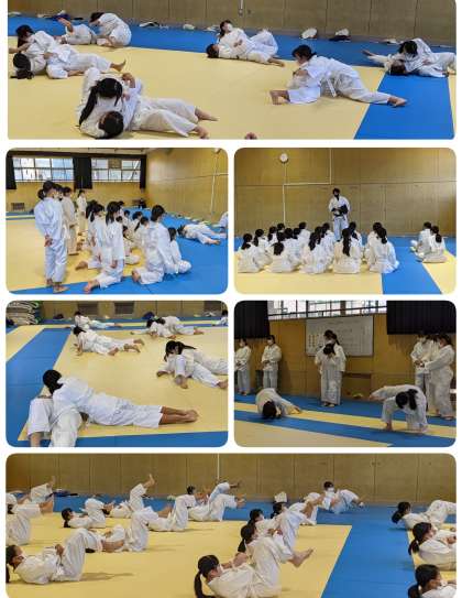 2年生の女子保健体育の授業です。 受け身と固め技を学習しています。