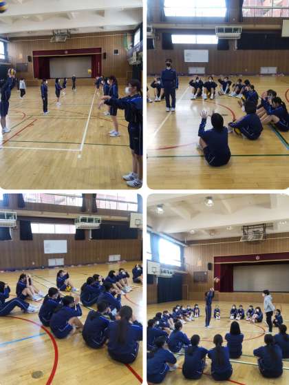 女子はバレーボールのオーバーハンドの練習をしています(^-^)/