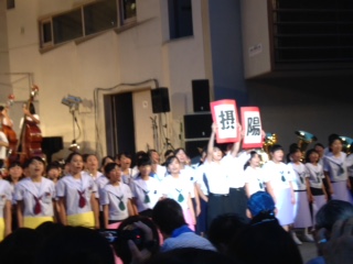 花乃井、本庄、天王寺、難波、大正北、瓜破西と摂陽の合同演奏で、迫力ある演奏に加え、工夫を凝らしたパフォーマンスもあり、とても楽しい演奏でした。
