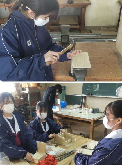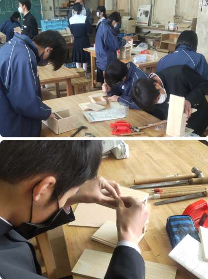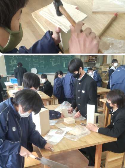 ノコギリやトンカチ、ヤスリをうまく使って制作しています(^-^)/