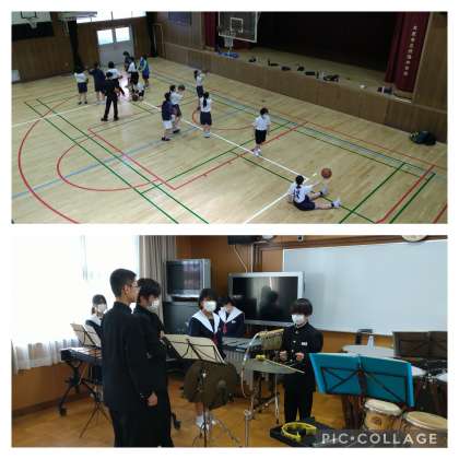 写真は、女子バスケットボール部と吹奏楽部です。
