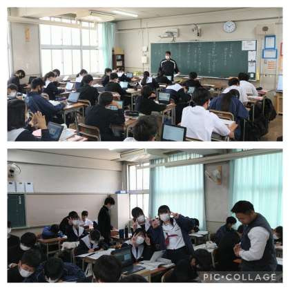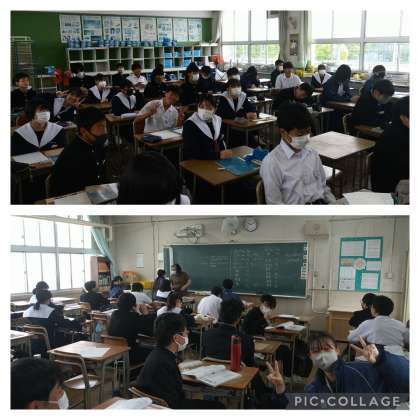 1組:国語、2組:数学、3組:美術、4組:理科の授業です。
