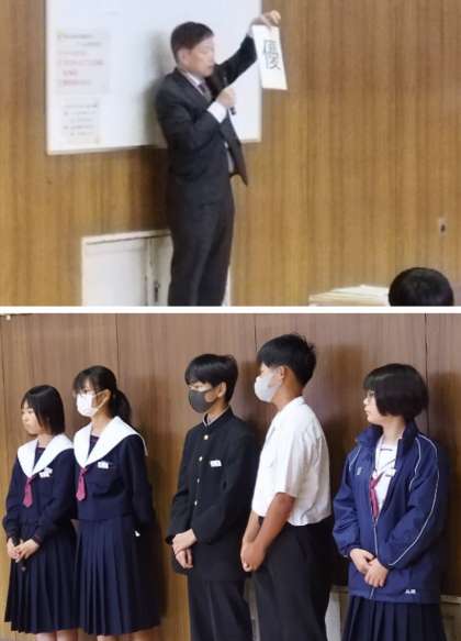 校長先生からは、いろいろなエピソードを引用されましたが、特に、いのちを大切にするには「優しさ」が不可欠で、他人を思いやる気持ちを忘れないでほしい。というお話がありました。