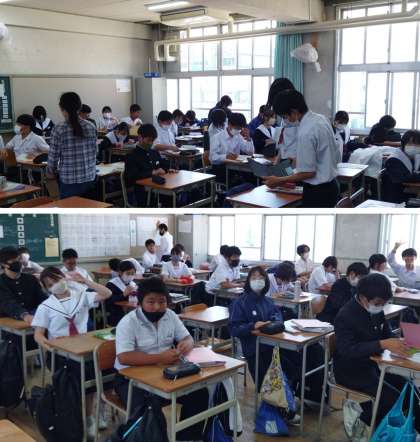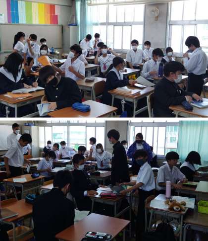 学級委員長が、チャイムの前に、学年全体に呼びかけをしています!