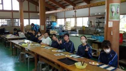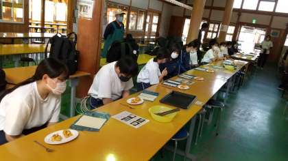 「アップルパイ+リンゴ摘果」の様子です。 バスはすぐ降りては三和観光農園に行きました。