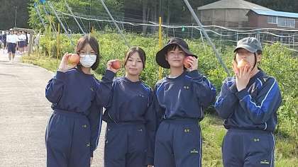 最後に、農園のご厚意でりんご片手に周辺を散歩しました、日射しもやわらかくなり、風がそよそよと気持ち良かったです。