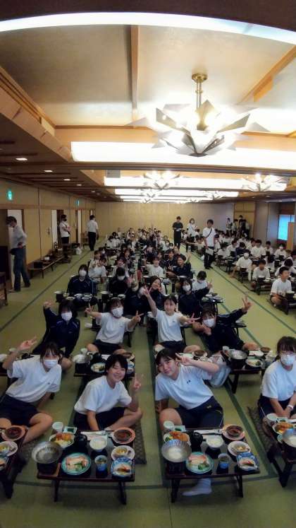 夕食を美味しく楽しくいただきました。この後、入浴・お土産購入タイム、そしてレクリエーションとなります。