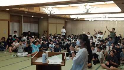 続いて「クラス対抗クイズ大会」です。「有名人の幼少期の写真で誰かを当てるクイズ」「私は誰でしょうクイズ」「4択クイズ」と続きました。ヒントにモノマネが入ったりして大盛り上がりでした。