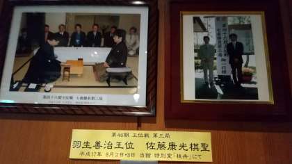 1階に降りると、このホテルで当時、あの羽生善治王位と佐藤康光棋聖の将棋の対局があったことがわかります。
