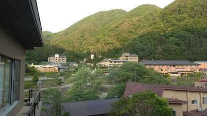おはようございます。77期生修学旅行、2日目を迎えました。ホテル4階から見える外の景色です。山に日がさしています。