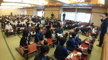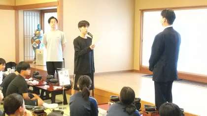 朝食後、その場で退館式を行いました。実行委員代表があいさつ、お礼のことばがありました。