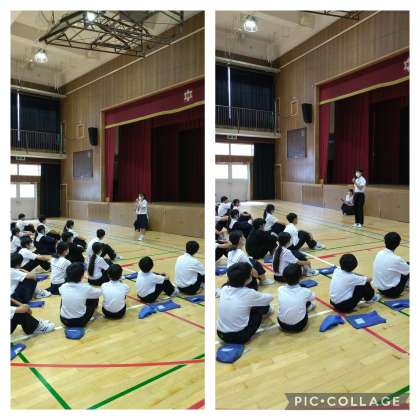 本日の学年集会で、委員長の中から選出された環境委員長と学習委員長から、教室の環境美化とテスト前の学習について話がありました。
