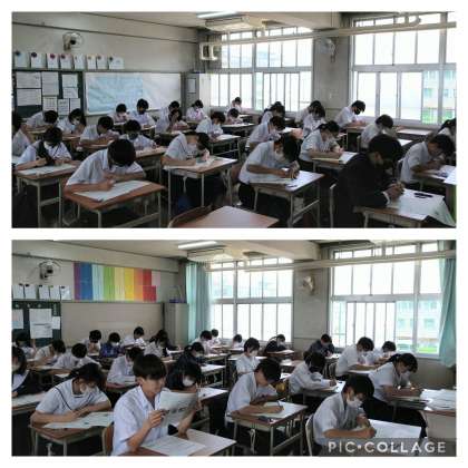 本日から中間テストが始まり、今までの勉強した成果を発揮して、頑張って取り組んでいます。
