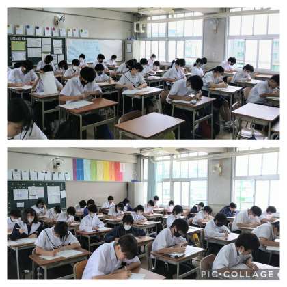 昨日に引き続き、中間テストに全力で取り組み、最後まで諦めずに頑張っています。