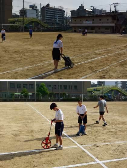 朝早くから体育委員さんたちが全体練習の準備をしてくれています!