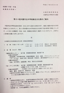 10月17.18日に、鶴見区民センター、咲くやこの花館で、大阪市立中学校の総合文化祭全体総合発表会が開催されます。