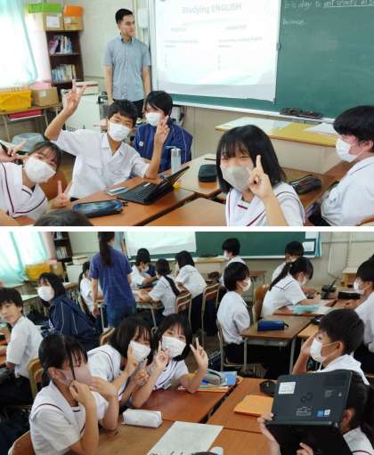 C−NETのマイク先生と、グループワークに取り組んでいます♪
