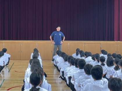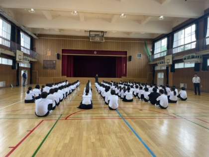 学年集会の様子です。藤本先生、田中先生、北田先生からのお話がありました。