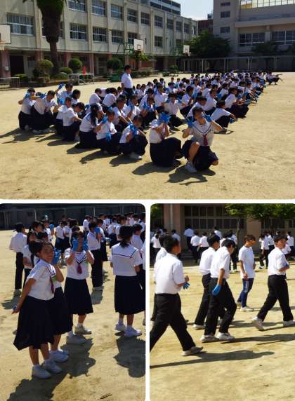 中庭に全員集合しました(^o^)