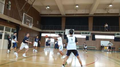8月18日(金)、本校体育館に下福島中学校を招いて男子バスケットボール部が練習試合を行いました。