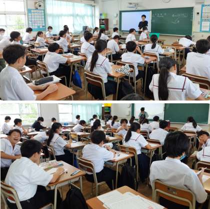 1組は理科、2組は美術の様子です! 暑さに負けず頑張っています♪