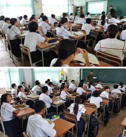 3組は国語、4組は社会の様子です! 社会では小学校の内容を復習しています(^o^)
