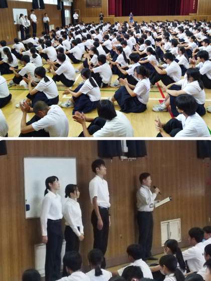 教育実習生3名の紹介と挨拶がありました! 今日から3週間、頑張ってください(^O^)v