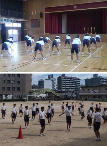 3組・4組の体育です! ウォーミングアップをしています(^o^)