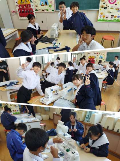 4組の家庭科です! ミシンでエプロンを製作しています^_^