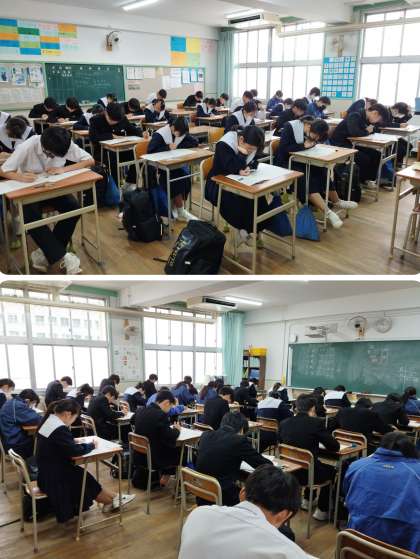 1組・2組の様子です! 実力テストに真剣に取り組んでいます(^o^)