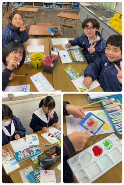 美術の授業の様子です! 抽象表現に挑戦しています。