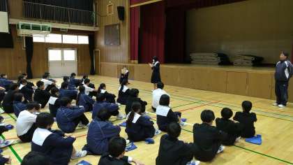 本日の集会では、美化委員長から昼休みに学級委員と美化委員が協力して、教室を掃除し、環境を良くする取り組みの話がありました。