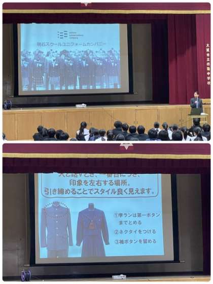 「制服の正しい着方・面接で大切にすること」などについてお話していただきました。