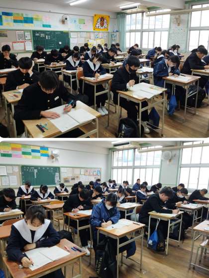 実力テスト(1日目)の様子です! 明日も実力テストが続きます、 がんばってください♪
