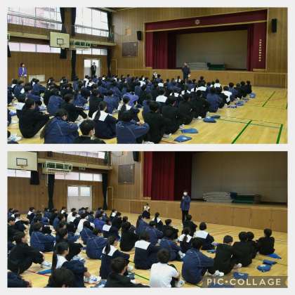 本日の集会では、3学期は3年生に向けての準備期間であり、スタートをきるチャンスの時期でもあると学年主任の先生と学年副代表から話がありました。