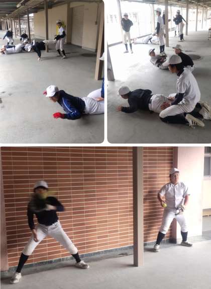 雨でグランドが使えないため、 渡り廊下で練習しています! 体力づくりにも余念がありません^_^