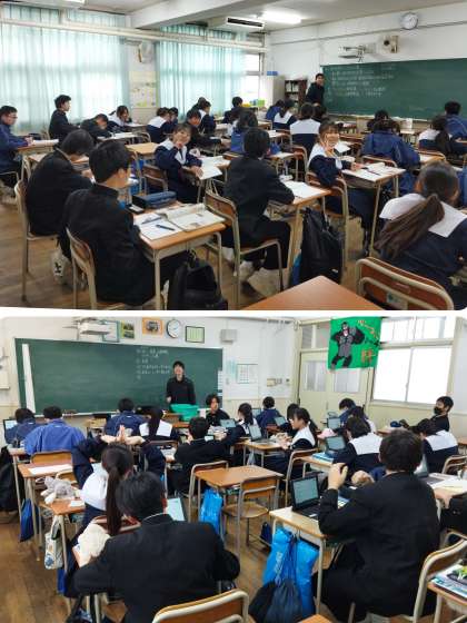 3組は社会、4組は理科です! 理科ではタブレットを活用して、火山について調べています(^o^)