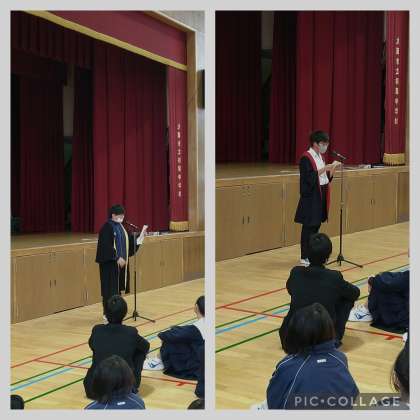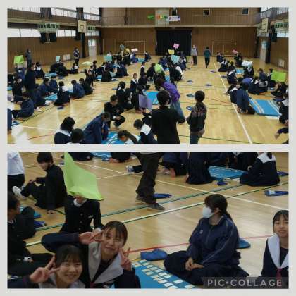 本日の午後、2年生は「百人一首大会」を行いました。大会委員長から開会式の言葉があり、皆楽しく取り組んでいました(^o^)