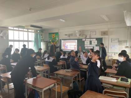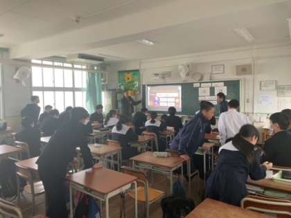 グループに分かれてゲーム形式のクイズに取り組んでいます!