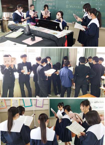 音楽の様子です! パートごとに分かれて歌唱トレーニングをしています♪