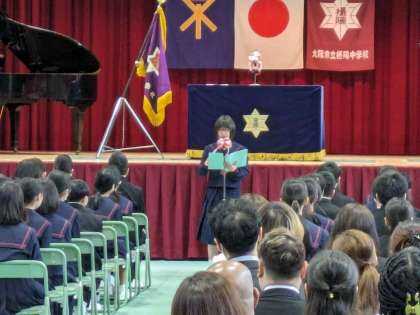 「在校生代表歓迎のことば」と「新入生代表よろこびのことば」の様子です。