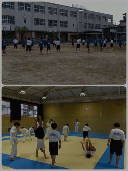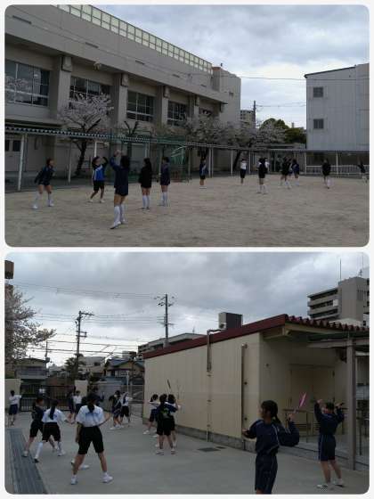 写真は、ハンドボール部、柔道部、女子バレー部、バドミントン部です。