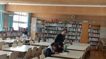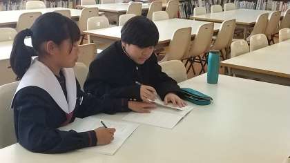 4月25日(木)放課後、図書室では放課後学習会が開催されています。今日は今のところ3人の参加がありました。
