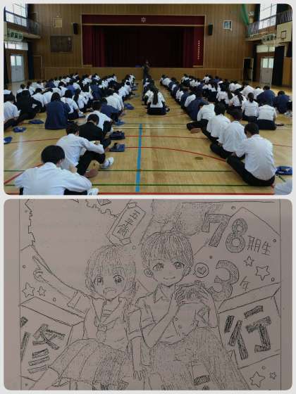 本日、体育館にてしおりを使い、「修学旅行」の事前説明を行いました。