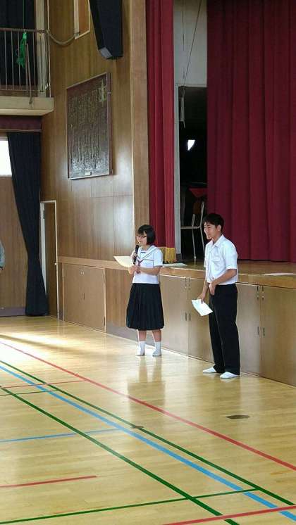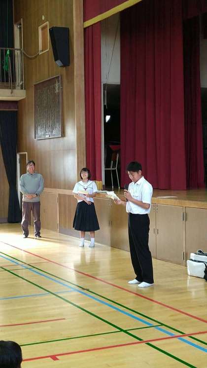 修学旅行委員会委員の司会進行で委員長のあいさつがありました。